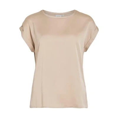 Vila Women's Viellette S/S Satin Top/Su Noos T Shirt, Cement, 14
