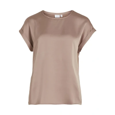 VILA Women's VIELLETTE S/S Satin TOP/SU NOOS T Shirt, Portabella, 34
