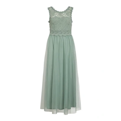 Vila Women's Vilynnea Maxi Dress Noos, Green milieu/Detail: Elastic, 16