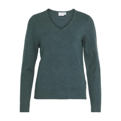 Vila Women's Viril V Neck L/S Knit Top Noos Jumper, Ponderosa Pine/Detail: Dark Melange, XS