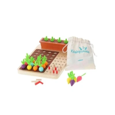 Keskipouss in the vegetable garden? Pink carrots? Blues? A player plants 4 carrots in his planter, his opponent must guess what's hidden. By aligning the carrots on the vegetable garden, it deducts as they are well placed. The aim is to discover the right combination before the last line. It's fun, it's natural, it's gourmet! For young and old, Manufacturer: Vilac