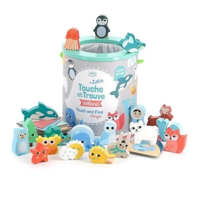 Vilac Touch and Find Game + Bingo, Includes Easy Wipe Clean Wooden Pieces, Matching Cards Storage Tub, 2 Years+, Iceland Theme Illustrated By Graphic Designer Michelle Carlslund