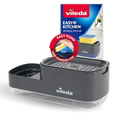Vileda Pump Detergent Dispenser with Sponge Holder Practical 2 in 1 Kitchen Solution Integrated Soap for Easy Dosing One Hand Robust & Durable Design