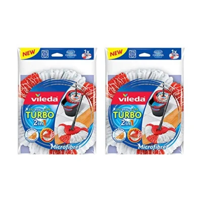 Vileda Turbo 2in1 Spin Mop Refill, Pack of 2 Head Replacements, Fits all Mops, Authentic Head, Red, 16.5 x 30 22 cm