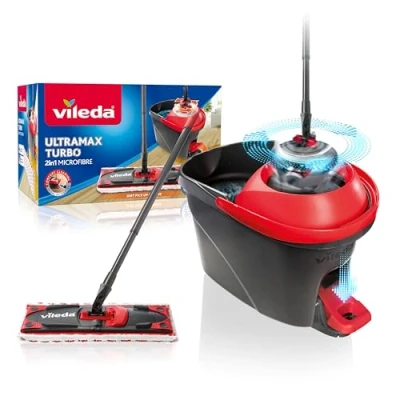 Complete set consisting of Ultramax 2-in-1 floor mop, bucket with power spinner and 2-in-1 microfibre mop cover - simply turbo clean No bending – in the bucket of the Vileda Ultramax Turbo Set, the mop cover can be washed out without bending down and wrung out according to moisture requirements Power Spinner: By pressing the foot pedal on the bucket, the power spinner sets in motion, dirt and excess water are thrown out of the mop into the bucket. We love it clean: for the sake of the environment, the product is delivered in sustainable eco packaging. EAN 4023103237742 International products have separate terms, are sold from abroad and may differ from local products, including fit, age ratings, and language of product, labeling or instructions.