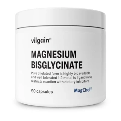 Vilgain Magnesium, Magnesium Bisglycinate for Proper Body Function, Optimally Used, Vegan and No Unwanted Additives, 90 Capsules