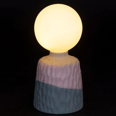 Globe lamp In stoneware Wireless 1 led Contemporary design Fits elegantly in different rooms of the house On/off switch Base with glossy finish Uses 3 LR44 batteries (not included) Polycarbonate battery compartment cover Measurements: l. 9 x D 9 x H 18cm Color: White Globe White Base and Green Globe Lamp Colour: white globe base white and green; stoneware Wireless; 1 LED Contemporary design; Fits elegantly into different rooms of the home On/Off Switch; Polished Finish Base