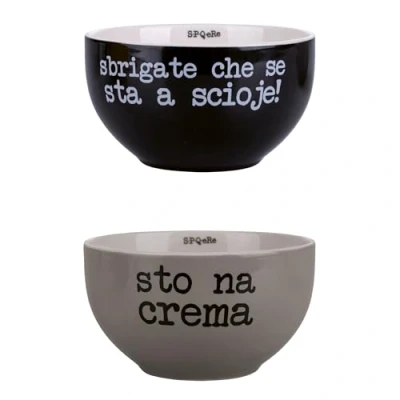 Set of 2 ice cream bowls, S.P.Q.eRe in New Bone China porcelain with handle. Capacity: 520 ml With S.P.Q.eRe lettering Dishwasher safe Microwave safe Dimensions: Ø 13 x h. 7 cm Set of 2 ice cream bowls, S.P.Q.eRE made of porcelain New Bone China With handle; Capacity: 520ml With S.P.Q.eRE lettering; Dishwasher safe Microwave-safe Dimensions: Ø 13 x H 7 cm