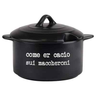 Cheese S.P.Q.eRe In stoneware Matt finish With lid Side grips With inscription: come er cacio sui macaroni Format: l. 15.4 x 11.5 x H 10 cm. Capacity: 320 ml. Dishwasher safe. Colour: anthracite S.P.Q.eRE Cheese Bowl; Stoneware Matt finish; with lid Side grips; with inscription: come er cacio sui macaroni Size: L 15.4 x 11.5 x H 10 cm; Capacity: 320 ml