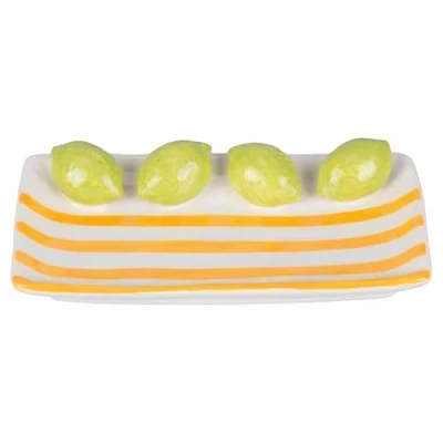 Fruit Life decorative saucer Made of ceramic. Decoration with lemon design. Dimensions: L. 15 x D 8.5 x H 3 cm. Not suitable for direct contact with food. Colour: white and yellow Fruit Life Decorative Ceramic Saucer Lemon design decoration; Size: L 15 x D 8.5 x H 3 cm Not suitable for direct contact with food; Colour: white and yellow