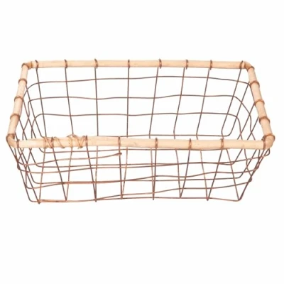 La Cucina medium rectangular basket in iron Willow wood edging. Dimensions: L. 30 x 20 x H 10 cm Geometric lines Linear design Avoid direct contact with food Color: copper and natural wood La Cucina Medium Rectangular Basket; Iron Willow border; Size: L. 30 x 20 x H 10 cm Geometric Lines; Linear Design Avoid direct contact with food; Color: copper and natural wood