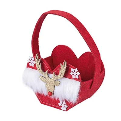 Heart bag with large reindeer Xmas In felt Equipped with handle Felt applied decorations With transparent window