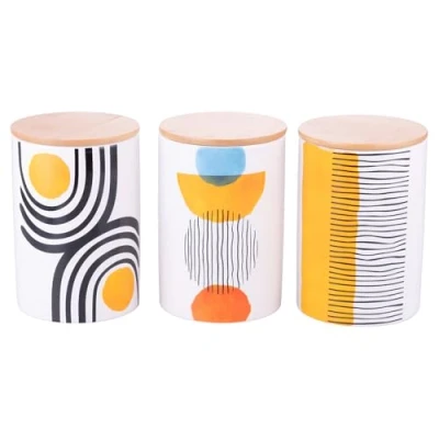 Villa d'Este Home Tivoli Set of 3 750 ml Stoneware Jars with Bamboo Lid Venice Lido