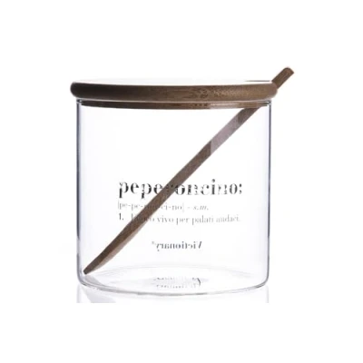 Villa d'Este Home Tivoli Victionary Glass Chilli Jar 550ml Lid and Spoon Bamboo Transparent