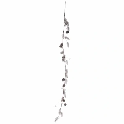 Villa d'Este Home Tivoli XMas Garden Silver Christmas Decoration Branch with Pine Cones and Berries L 120 cm