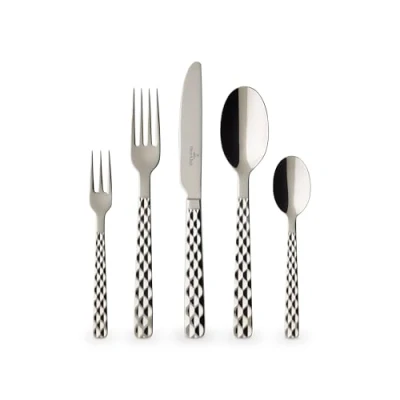 Elegant cutlery with haptic diamond embossment for up to 6 people, all-rounder for everyday use or for festive occasions Ideal accompaniments from starter to dessert: 6 tablespoons, 6 forks, 6 knives, 6 coffee spoons, 6 cake forks Fits perfectly in your hand, Can be combined with various Villeroy & Boch collections High quality: Stainless, dishwasher safe and polished Stainless Steel, neutral taste for daily use. Contents: 1x Villeroy & Boch Boston Cutlery Set, 30-Pieces, Material: Stainless Steel