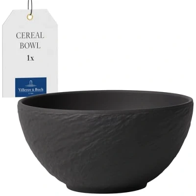 SLATE LOOK: Whether on the table or as a stylish decorative feature - the beautifully shaped slate-look bowl in premium porcelain is ideal to present favourite foods and much more in perfect style. BEAUTIFULLY VERSATILE: The bowl is an ideal size for cereal in the morning, desserts, soups or for serving side dishes. PERFECTLY EXPANDABLE: The bowl from the Manufacture Rock series can be expanded ideally with many other items from this tableware collection. TOP QUALITY: Premium porcelain, dishwasher-safe & microwave-safe bowl - perfect for cafés and restaurants thanks to its practical shape, stackable design, shock- and impact-resistant edges. DELIVERY CONTENTS: 1x Villeroy & Boch Manufacture Rock bowl, capacity: 650 ml, material: premium porcelain, colour: matt black, weight: 340 g (item no. 10-4239-1900)