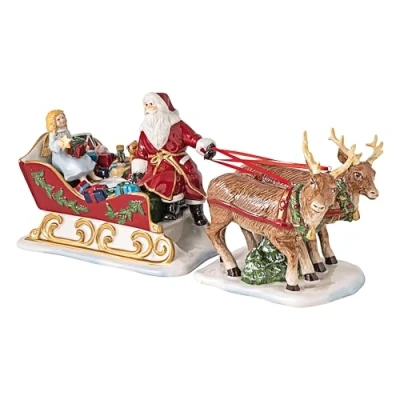 Villeroy & Boch Christmas Toys Nostalgia Sledge with Santa and Reindeers, Decorations, Xmas Decoration Indoor, Table Decoration, Porcelain