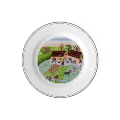 Classic bread plate with picturesque landscape for serving bread as a side dish for brunch, lunch or dinner Ideal size for preparing bread slices, baguettes or small rolls, Can also be used for desserts or salads, Visual eye-catcher Thanks to handy shape also Ideal for use when catering, Can be carried with one hand, Can be stacked inside each other, Dishwasher safe Dishwasher and microwave safe, High quality: Premium Porcelain made in Germany Contents: 1x Villeroy & Boch Design Naif bread plate "Farm" (17 cm), Material: Premium Porcelain, Colour: white/colourful