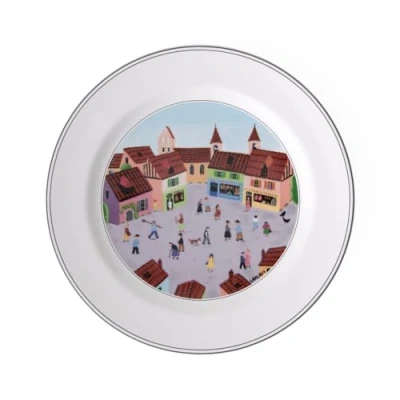 Classic dinner plate with lovely village illustration is Ideal for use everyday or for the banquet table Size is suitable for serving various dishes with side dishes, Perfectly combinable with the Design Naif collection Thanks to its simple shape it is also Ideal for catering, Can be carried with one hand, Can be stacked inside each other, Dishwasher safe Dishwasher and microwave safe, High quality: Premium Porcelain made in Germany Contents: 1x Villeroy & Boch Design Naif dinner plate "Hamlet" (27 cm), Material: Premium Porcelain, Colour: white/colourful