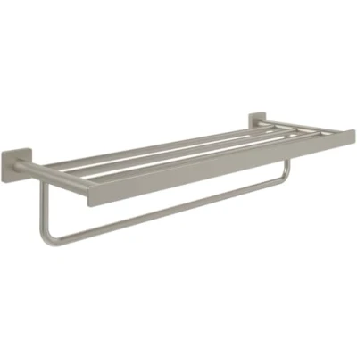 Villeroy & Boch Elements Striking Towel Rack with Wall Mounted Shelf Rail Length 595mm Square Brushed Nickel Matt