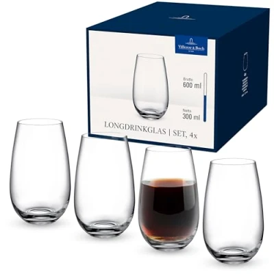 Timeless crystal glass tumblers in a practical size as stylish accompaniments at brunch, lunch or dinner with friends These versatile glasses are ideal for serving water, lemonade, small cocktails or desserts; the urban design is exceptionally eye-catching The simple design can be paired flexibly with all Villeroy & Boch collections, ideal as a wedding or housewarming gift Also suitable for cafés and restaurants: high-quality crystal glass makes it dishwasher-safe while providing a long-lasting shine Delivery contents: 4x Villeroy & Boch Entrée tumblers (620 ml), material: crystal glass, colour: clear (item no.: 11-3658-7895)
