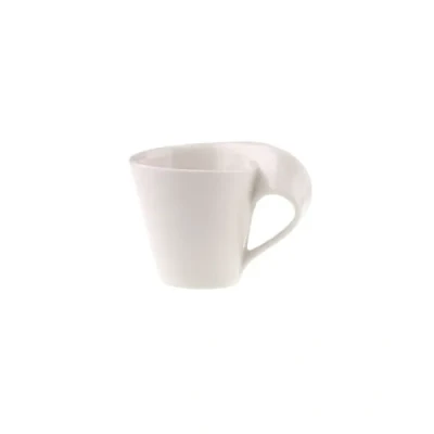 AmazonModern espresso cup with curved handle for the stylish enjoyment of coffee for everyday and special occasions Trendy eye-catcher on every table, Fits under coffee machines that allow a cup height of 6.8 cm, NewWave handle is easy to hold Handy shape, Shock and impact resistant edges, Special hardness and scratch resistance make the cup ideal for daily use and catering Dishwasher and microwave safe, High quality: Premium Porcelain made in Germany Contents: 1 Villeroy & Boch NewWave Caffè espresso cup (80 ml), Material: Premium Porcelain, Colour: White
