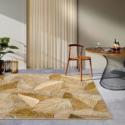 Villeroy & Boch Eugene Indoor Outdoor Rug Modern Flat Weave Rug, Palm Leaves Design, Oeko Tex Weatherproof UV Resistant for Balcony, Patio, Garden Gold Black, 160 x 235 cm