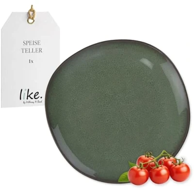 STRIKING DESIGN: The dinner plate impresses with an individual reactive glaze that creates special colour gradients - making each piece truly unique NATURAL CHARM: The organic shape and soft green shades create a rustic yet modern look on the table IDEAL SIZE: The dinner plate is perfect for main courses and creative presentation of dishes - a real eye-catcher on the table ROBUST & EASY-CARE: Made from high-quality earthenware, the dinner plate is dishwasher-safe and microwave-safe for easy use PACKAGE CONTENTS: 1x like. by Villeroy & Boch Lave vert dinner plate, size: 28 x 28 x 2.7 cm, material: earthenware, colour: green, item number: 1042952610