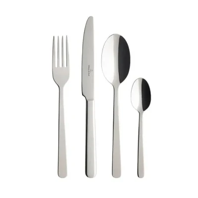 Elevate your table setting with the Villeroy & Boch Louis 24-Piece Cutlery Set. The clear and uncomplicated shapes of the Louis cutlery collection are a perfect match for modern, urban patterns. The set's simple design combines a classic shape with a minimalist look that complements any style effortlessly.The 24-piece set provides everything for six people: 6 table forks, 6 table knives, 6 dessert spoons, and 6 coffee spoons, making it suitable for everyday use or special occasions.Villeroy & Boch, with a history spanning over two and a half centuries, is renowned for its high-quality products. This set, made from dishwasher-safe stainless steel, features flat handles and rounded ends, providing a comfortable grip.  Knives are not for sale to persons under the age of 18. - all knives and bladed products are delivered by Age Verified Delivery (AVD). The carrier may request proof of age in order to deliver your parcel. If proof of age is not available, or the recipient is underage, the carrier will refuse to deliver.