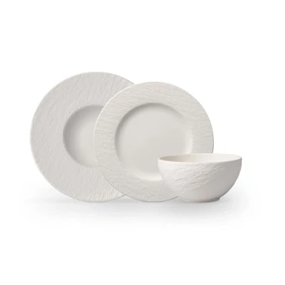 Service with style the 6 piece Rock set contains two deep pasta dishes two flat plates and two dishes Unusual colour the minimalist white of this porcelain crockery stands out and lends your table a touch of industrial chic Lovely gift idea this crockery makes an excellent gift for family friends and anyone who loves contemporary design Premium quality this robust porcelain is dishwasher and microwave safe Delivery includes 1x Villeroy & Boch Manufacture Rock blanc starter set 6 pcs 2x Manufacture Rock pasta dish 2x Manufacture Rock dinner plate 2x Manufacture Rock bowl (item no 10-4240-8950)