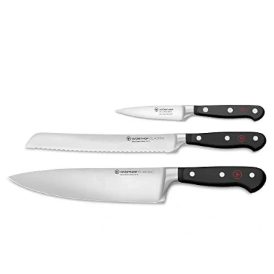 Choose the WÜSTHOF Classic 3-Piece Knife Set with Bread Knife for a perfect blend of precision, comfort, and timeless design, making it a valuable asset for any kitchen setting. Whether you are slicing, chopping, or paring, this set equips you with the essential tools needed to achieve outstanding culinary results.