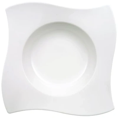 Deep porcelain pasta plate with wide, curved edge for serving any kind of pasta dishes, Ideal for daily use and special occasions Splash-free enjoyment of pasta dishes with sauce thanks to optimum depth, Fits perfectly to the NewWave collection Ergonomic shape also ideal for catering, Can be used with one hand, stackable, Shock and impact resistant edges, Dishwasher safe Dishwasher safe, Microwave and oven suitable up to 200 ° C, High quality: Premium Porcelain made in Germany Contents: 1 NewWave pasta plate (28 cm), Material: Premium Porcelain, Colour: White