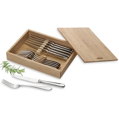 For pizza and steak fans: You can enjoy any barbecue party with family or friends with the cutlery set for pizza or steak It cuts through like butter: The sharp serrated blade glides smoothly through a juicy steak or pizza for a clean and easy cut Easy to handle: The sharp, three-pronged fork with ergonomically shaped handle fits perfectly in the hand and allows easy spearing, even of larger pieces of meat For daily use: The cutlery is made of dishwasher safe, polished and tasteless stainless steel Scope of supply: 1x Villeroy & Boch Oscar Steak Cutlery 12 part, dimensions: 28.5 x 20 x 5 cm, weight 970 g (Item No. 12-6339-9374)