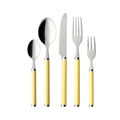 Cutlery with yellow plastic handle for up to 6 people, All-rounder for everyday use and as an original gift idea Can be used from appetizer to dessert: 6 tablespoons, 6 forks, 6 knives, 6 coffee spoons, 6 dessert forks Easy to hold, Thanks to colourful plastic handle it is also suitable for outdoors, Can be combined with various Villeroy & Boch collections High quality: Stainless, dishwasher safe and polished stainless steel, Neutral taste, For daily use Contents: 1x Villeroy & Boch Play! Sunny Day cutlery 30 pieces, Material: stainless steel, plastic, Colour: yellow