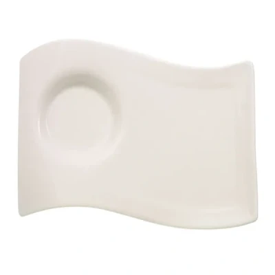 Large saucer in wave design is a perfect complement to NewWave coffee tableware, Ideal for breakfast or for the coffee table Fitting indentation for the secure stand of NewWave cups, Large space for placing biscuits, milk and sugar for coffee, Trendy eye-catcher Handy shape, Shock and impact resistant edges, Special hardness and scratch resistance make the saucer ideal for daily use and for catering Dishwasher and microwave safe, High quality: Premium Porcelain made in Germany Contents: 1 Villeroy & Boch NewWave Caffè large party plate saucer (22 x 17 cm), Premium Porcelain, White