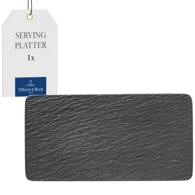 Extremely versatile: Serve up delicious meat, tasty fish and crunchy vegetables on this beautifully shaped presentation plate Unique texture: The surface is reminiscent of slate and its slightly rough texture is pleasing and unique Breath of fresh air: Combine traditional shiny pieces from your crockery set with the Manufacture Rock serving plate to turn it into a truly stunning feature! Gift idea: Surprise your loved ones with this elegant serving plate and add a luxurious touch of class to your home Delivery includes: 1x Villeroy & Boch Manufacture Rock rectangular serving plate, dimensions: 35 x 18 x 1.2 cm, weight: 672 g (item no. 10-4239-2281)