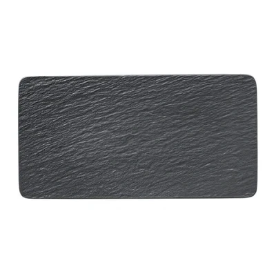Harts of SturThis Villeroy & Boch Manufacture Rock Noire Rectangular Serving Plate is perfect for serving cheese, meats or delicious chilled desserts and sweets on your table.Manufacture Rock Noire features a distinctive slate-like appearance with matte-textured porcelain surfaces, striking black accents, and an iconic design.Made from premium porcelain this rectangular serving plate is suitable for use in the microwave for warming food and is dishwasher safe for easy and convenient cleaning.Dimensions: 1(H) x 18(W) x 35(L)cm.