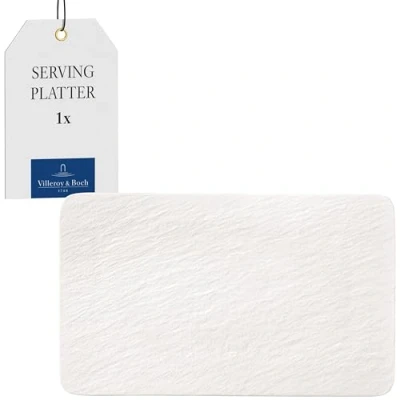 Use throughout the day: This universal plate is perfect for serving up all kinds of main dishes in style Unique texture: The surface is reminiscent of slate and its slightly rough texture is pleasing and unique Full compatibility: Combine this understated plate with gold or silver detailing and allow it to stand out when combined with shiny porcelain crockery Special occasions: This plate is the perfect addition to any crockery set used for special occasions, adding a design highlight with its unique texture Delivery includes: 1x Villeroy & Boch Manufacture Rock blanc rectangular multi-functional plate, dimensions: 28 x 17 x 1 cm, weight: 544 g (item no. 10-4240-2772)