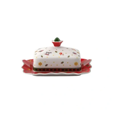 Add a touch of nostalgic charm to your Christmas breakfast or brunch with the Villeroy & Boch Toys Delight Butter Dish. Crafted from high-quality premium porcelain, this delightful piece is adorned with whimsical toy-themed illustrations and framed in the signature festive colours of red, green and white.Whether you’re setting the table for a cosy winter morning or a full Christmas feast, this butter dish brings warmth, tradition, and storybook charm to your seasonal spread. Designed to be both decorative and functional, it's dishwasher-safe for everyday convenience and microwave-safe for those colder mornings when butter needs softening.Part of the collectible Toys Delight Christmas range, perfect for gifting, mixing, and building your own magical table setting.Dimensions: 18.9cm (L) x 15.9cm (W) x 11.4cm (H). Weight: 0.69kg.