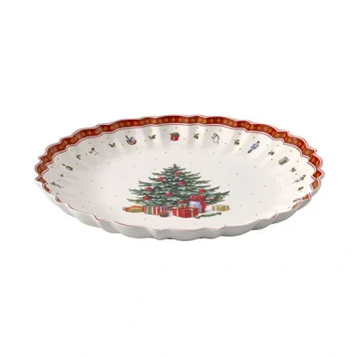 Designed for seasonal gatherings and festive indulgence, the Toys Delight Round Serving Bowl from Villeroy & Boch brings character and charm to your Christmas table. Whether you're serving slices of butter stollen, spiced gingerbread or fresh fruit, its gently scalloped edge and nostalgic design make it a decorative feature as much as a functional dish.Beautifully finished in Villeroy & Boch’s signature festive palette , this round bowl is part of the collectible Toys Delight collection — ideal for mixing, matching or gifting as it is supplied in a gift box. Made from premium porcelain, it's suitable for the microwave and easy to care for by handwashing.Dimensions: 45.7cm (L) x 45.7cm (W) x 5cm (H). Weight: 2.30kg.