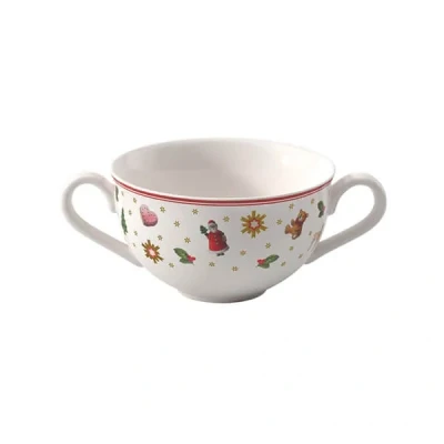 Add warmth to winter meals with the Villeroy & Boch Toys Delight Soup Cup, designed for serving hearty soups, broths or festive stews. With its curved shape, two handles and generous capacity, this piece is both practical and visually striking on a seasonal table.Part of the Toys Delight collection, the cup is finished with playful patterns inspired by vintage toys and traditional Christmas colours. The festive palette gives it a timeless feel that complements a wide range of festive table settings. Crafted from high-quality premium porcelain, it's both microwave safe and ideal for those who appreciate lasting craftsmanship.Hand washing recommended to maintain its elegant finish.Dimensions: 16.9cm (L) x 11.5cm (W) x 6.7cm (H). Weight: 0.28kg.