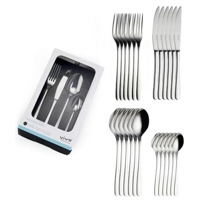 CUTLERY SET: The simple 24-piece cutlery set is suitable for up to 6 people and can be used all day long, from breakfast through until dinner. TIMELESS DESIGN: The streamlined design of the cutlery coordinates with any table service and ensures a firm grip for both adults and older children. PREMIUM QUALITY: The cutlery set is dishwasher-safe and retains its shine even after repeated cycles in the dishwasher. CONTENTS: The set consists of 6 dinner spoons, 6 table forks, 6 table knives and 6 coffee spoons - a beautiful gift idea for a first home, a wedding or a birthday. DELIVERY CONTENTS: 1x vivo by Villeroy & Boch New Fresh Basic table cutlery, 24 pcs. cutlery set, material: stainless steel 18/10, weight: 1.098 kg (item no. 19-5317-9030)