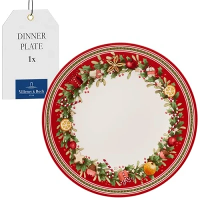 Villeroy & Boch Winter Bakery Delight Dinner Plate Red, Dishwasher Safe, Microwave Christmas Plate, Tableware Dinner, Large Premium Porcelain