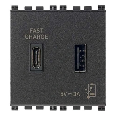 Instructions and tutorial on faidate.vimar.com For the civil series: Arké The USB type C socket is a standard used in devices of the latest generation where the plug can be plugged in both directions The Type C outputs allow fast charging of the device (Fast Charge) with currents up to 3 A per output Vimar 19295. AC USB power supply 5 V 3 A for electronic devices, 1 USB type A and 1 USB type C, provide a total of 3 A for charging a device up to 3 A (e.g. tablet) or two devices (e.g. tablet, smartphone), power supply 120-240 V ~ 50/60 Hz, 2 modules, Arké series, grey, Manufacturer: Vimar