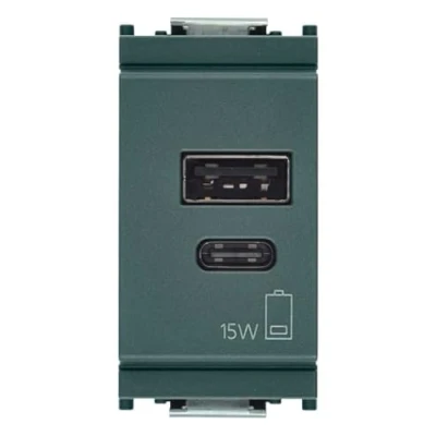 Vimar USB power supply 16292.AC.15 Idea 15W 3A 5V for electronic devices, 1 USB Type-A output and 1 USB Type-C output, optimized for one device with up to 3A (e.g. B. Tablets) or two devices at the same time (e.g. tablet, smartphone), power supply 120-240V ~ 50/60Hz, grey - 1 x Module, Manufacturer: Vimar