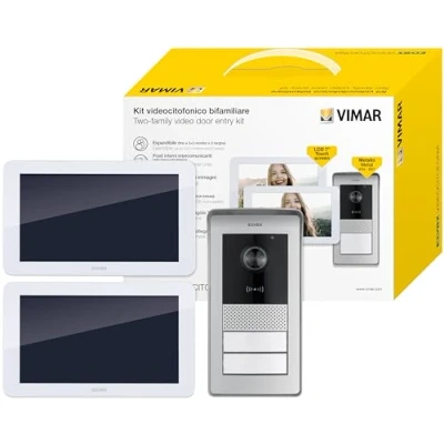 Vimar K42936 Double Family Video Door Phone Kit Touch Screen Number Plate with RFID Reader 2 Buttons, x 40103 Power Supply, 4 Way Bus Distributor, Fixing Brackets
