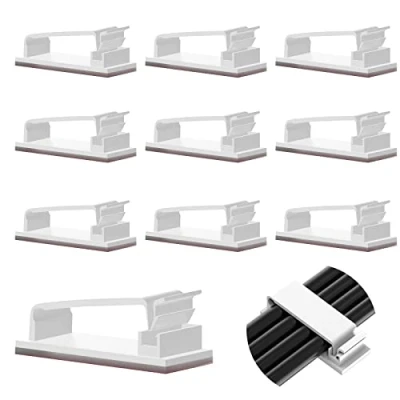 Vinabo 10 Pcs Cable Holder Clips,Self Adhesive Management Clips, Organisers Wire Clips Cord for Home, Office, Car, Nightstand, Desk Accessories (White)