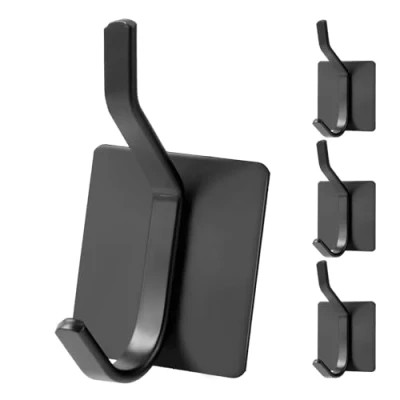 Vinabo 4 Pieces Wall Adhesive Hooks, Bathrobe Hangers, Hooks for Cabinets, Doors, Walls, No Drilling and Waterproof, Rustproof, Black
