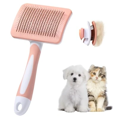 Vinabo Brush for Dogs and Cats, Self Cleaning Small Dogs, Cat Brush, Pet Eliminate Tomentose Undercoat Tangles Cinnamon